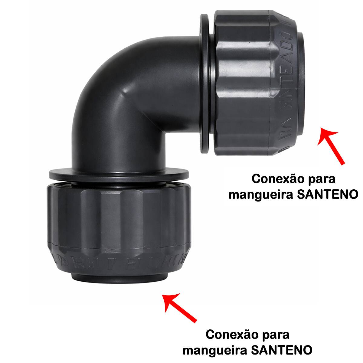 O joelho para mangueira Santeno viabiliza mudanças de direção em 90 graus no layout de irrigação de forma segura e eficiente. A peça contorna os cantos dos canteiros, acompanha cercas e desvia de obstáculos topográficos sem provocar dobras na tubulação flexível. A aplicação deste componente técnico impede o estrangulamento do fluxo de água, garantindo que a pressão operacional se mantenha rigorosamente uniforme até o último emissor da linha de microaspersão.