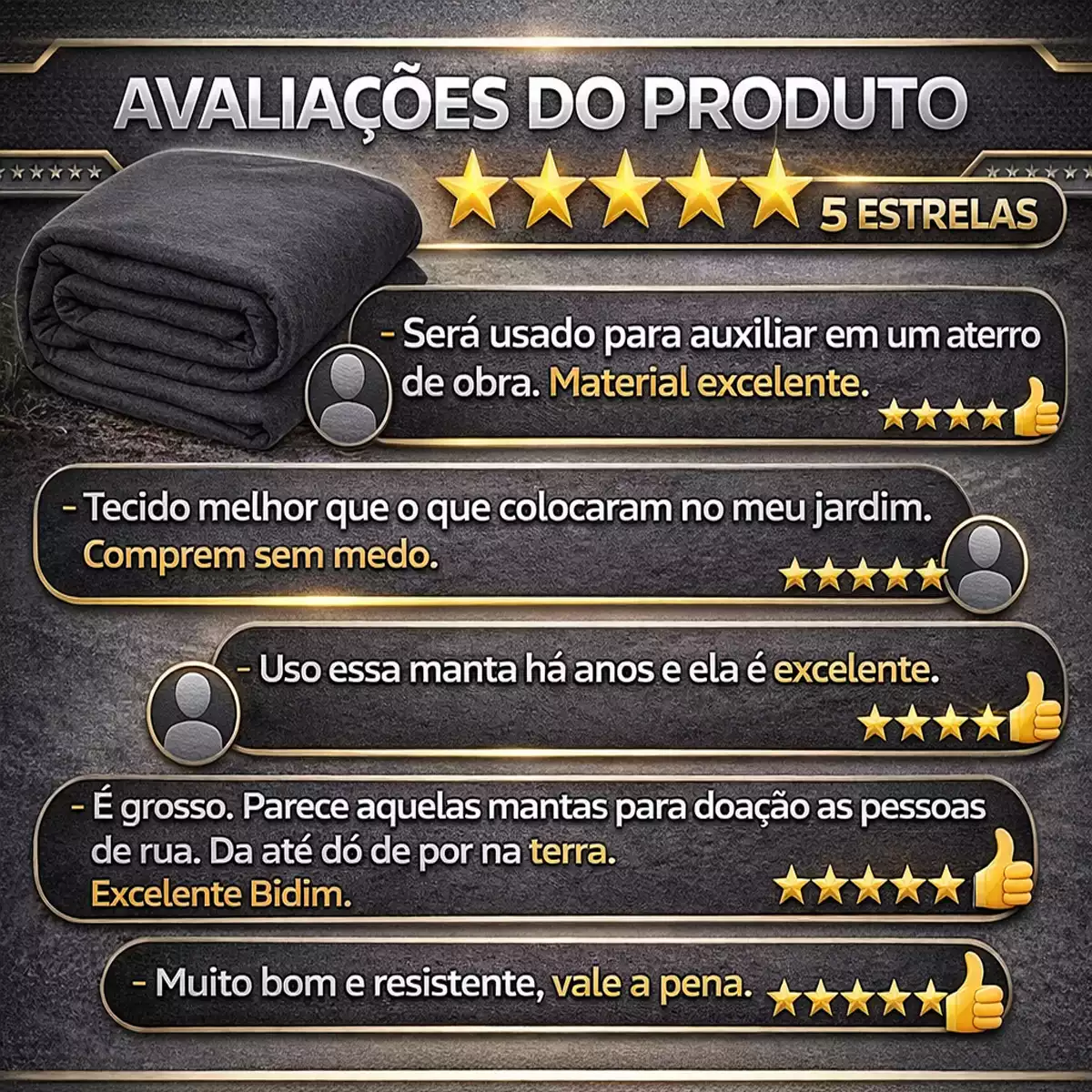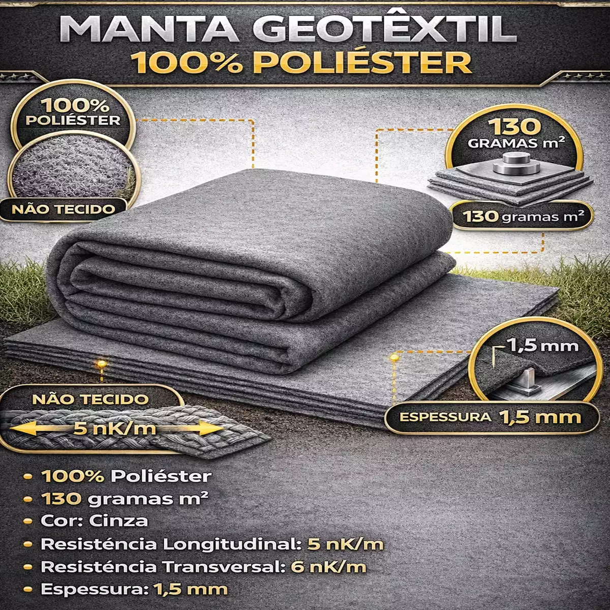| Composição | 100% Poliéster (Não apodrece) |