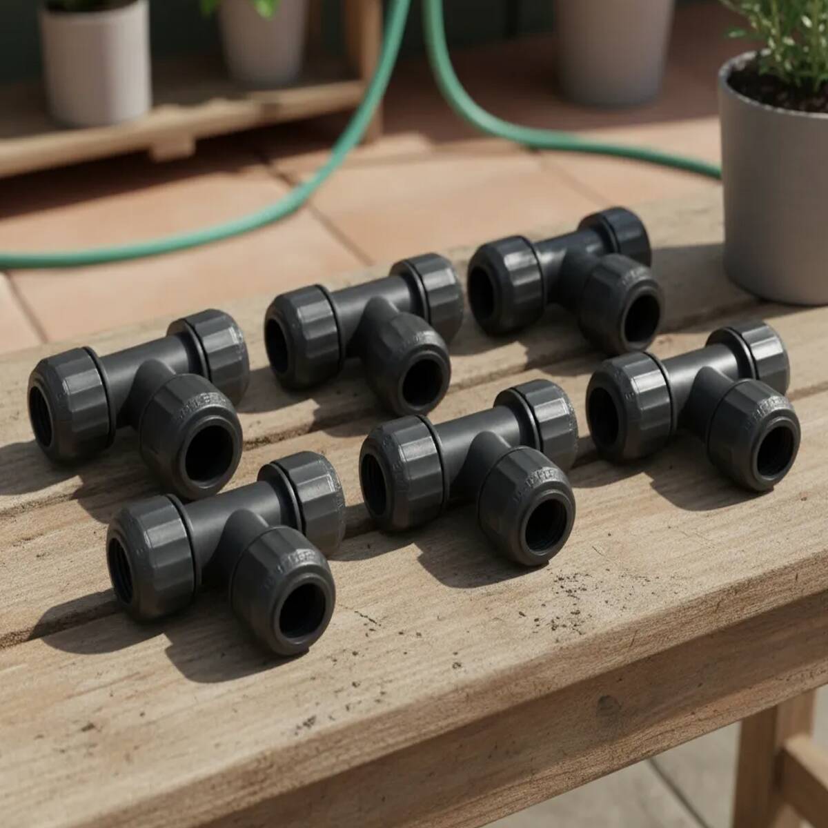 - Bifurcação segura: A estrutura em formato de “T” divide o fluxo de água de maneira equilibrada, ampliando a área irrigada sem comprometer o desempenho dos emissores originais.